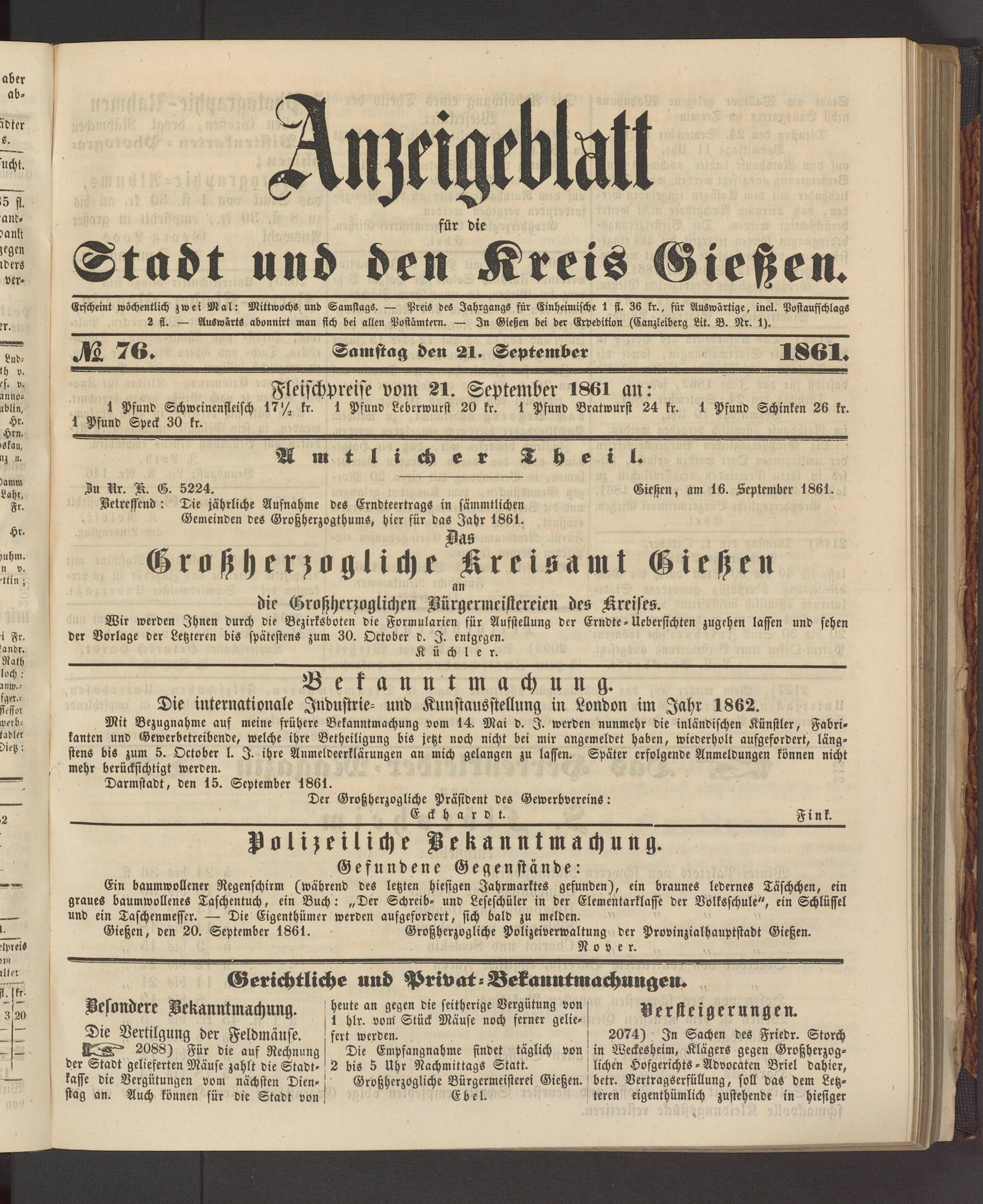 Anzeigeblatt für die Provinzialhauptstadt Gießen. 1840-1867
