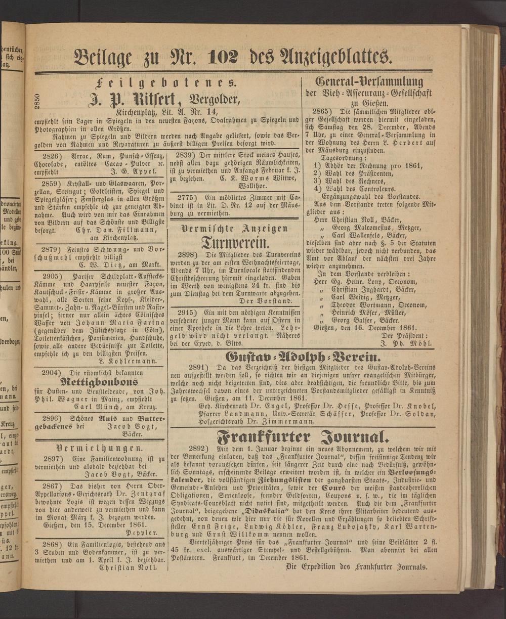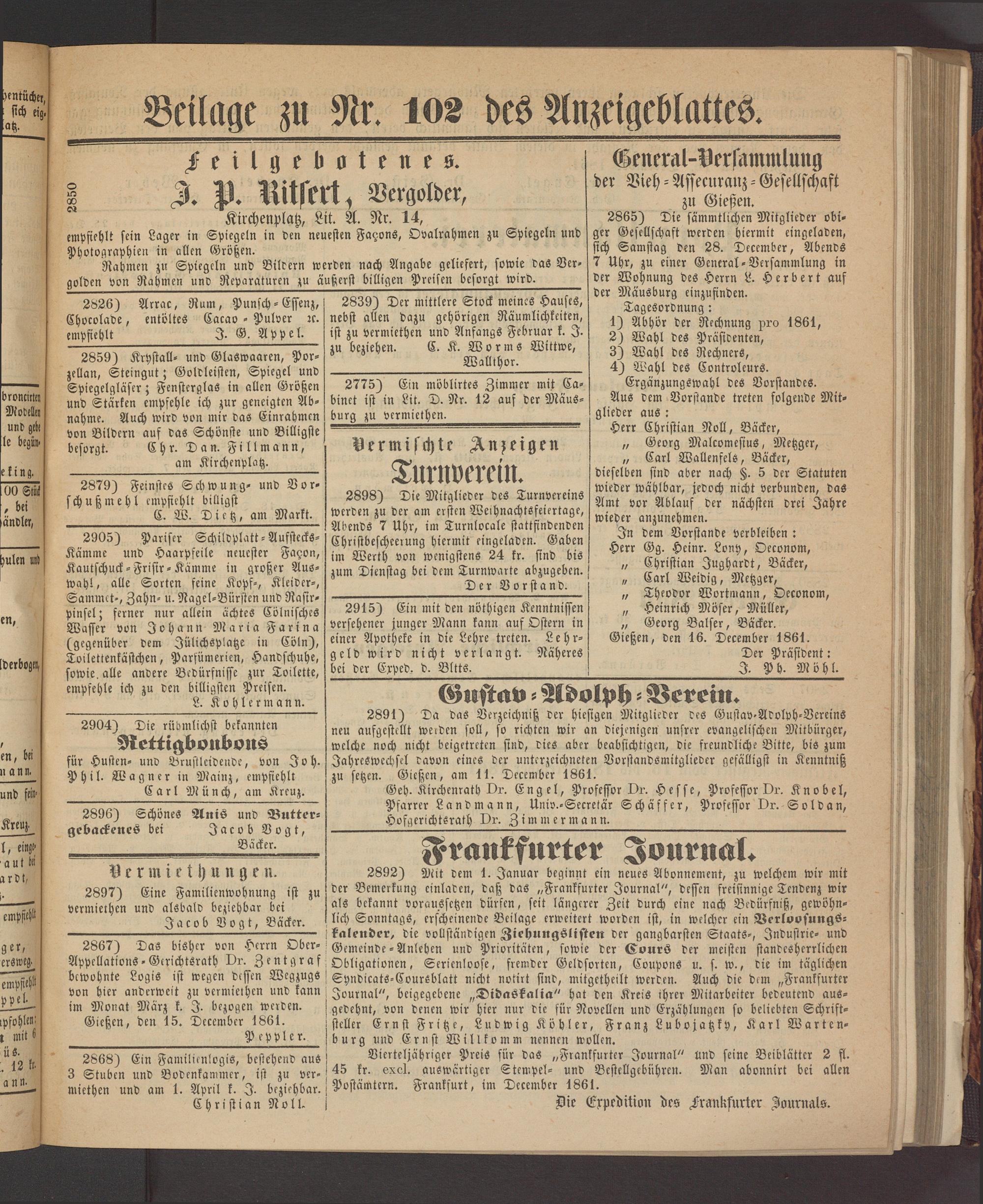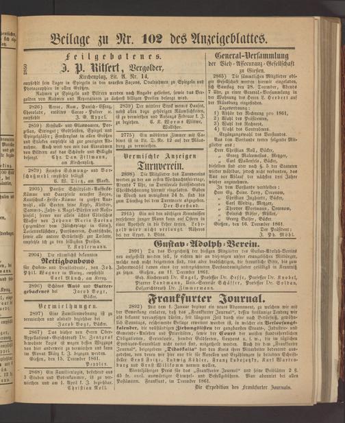 Anzeigeblatt für die Provinzialhauptstadt Gießen. 1840-1867