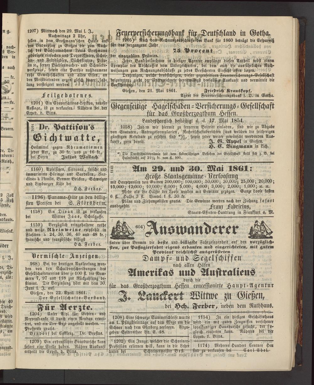 Anzeigeblatt für die Provinzialhauptstadt Gießen. 1840-1867