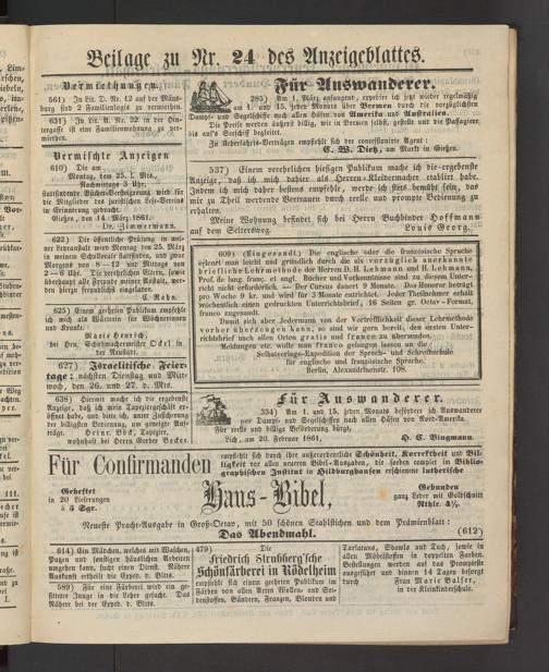 Anzeigeblatt für die Provinzialhauptstadt Gießen. 1840-1867