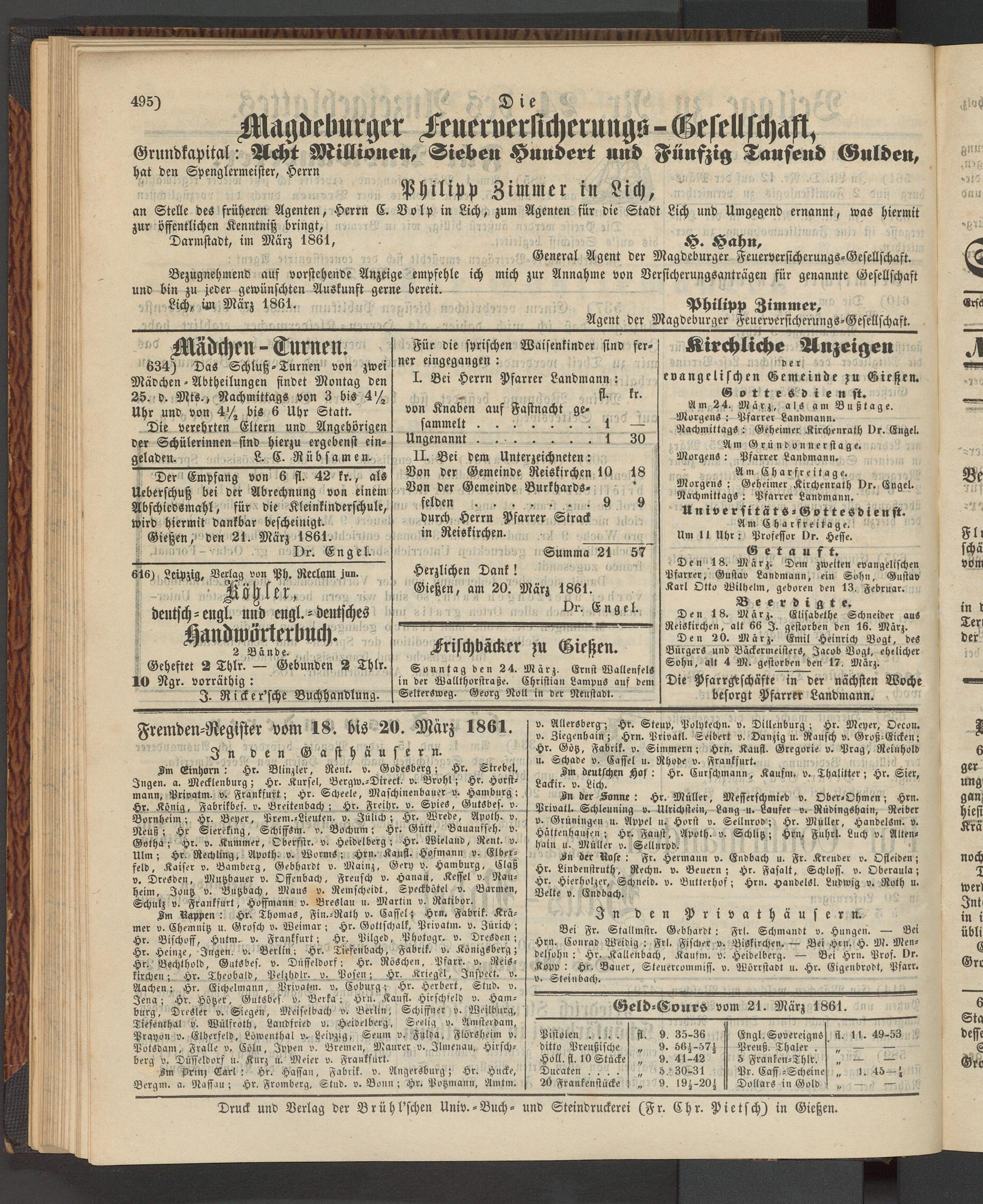 Anzeigeblatt für die Provinzialhauptstadt Gießen. 1840-1867