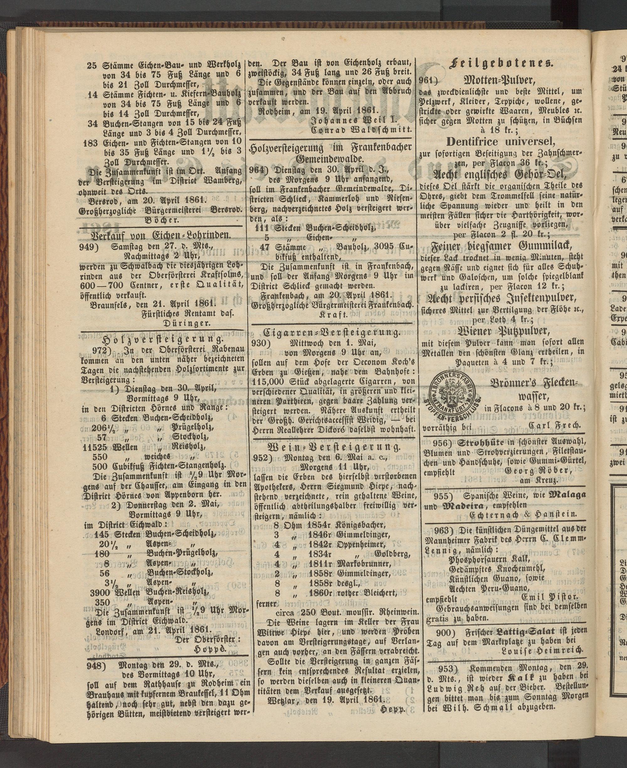 Anzeigeblatt für die Provinzialhauptstadt Gießen. 1840-1867
