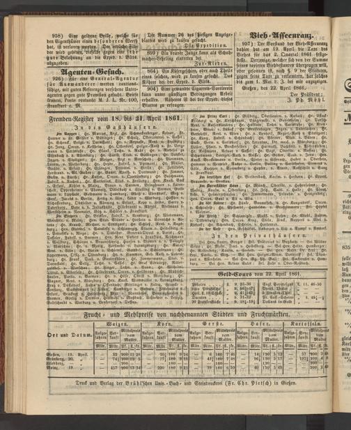 Anzeigeblatt für die Provinzialhauptstadt Gießen. 1840-1867