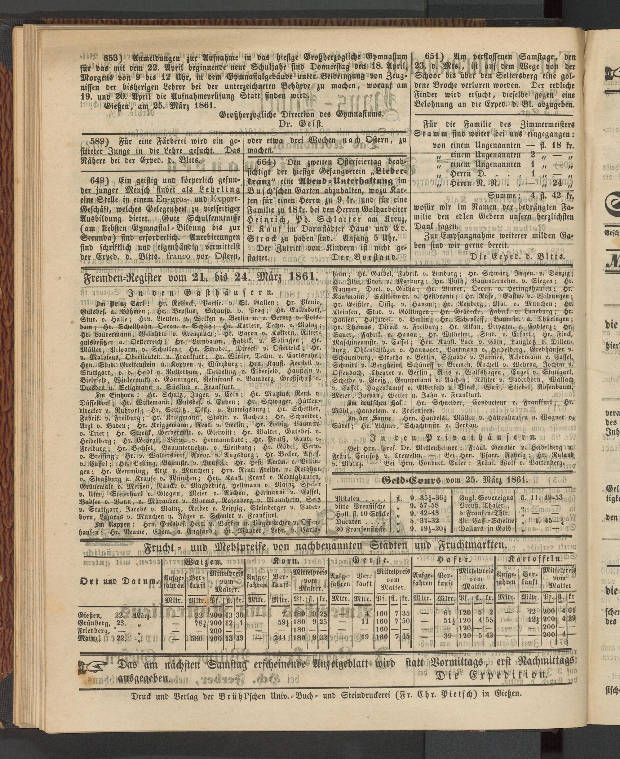 Anzeigeblatt für die Provinzialhauptstadt Gießen. 1840-1867