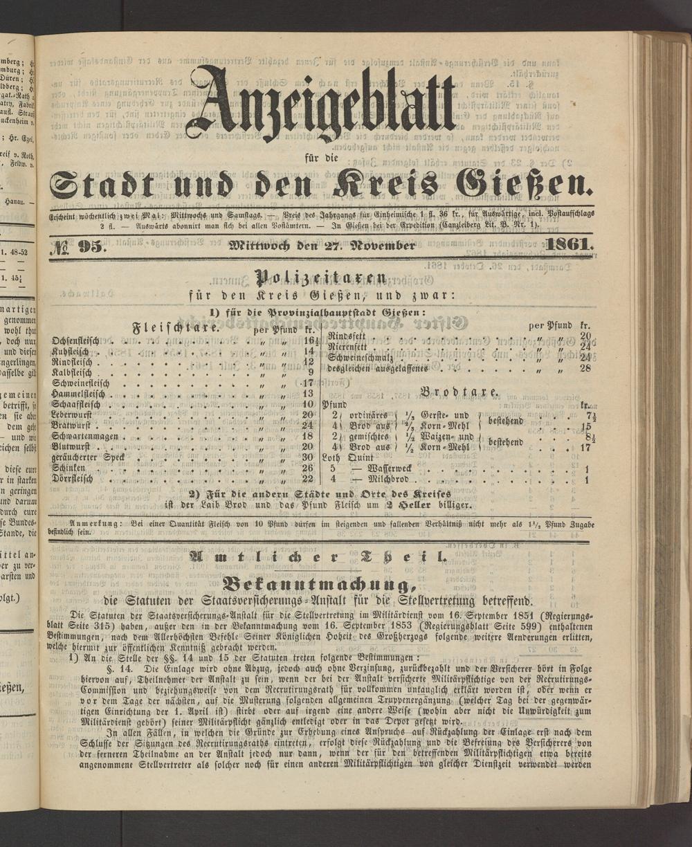 Anzeigeblatt für die Provinzialhauptstadt Gießen. 1840-1867