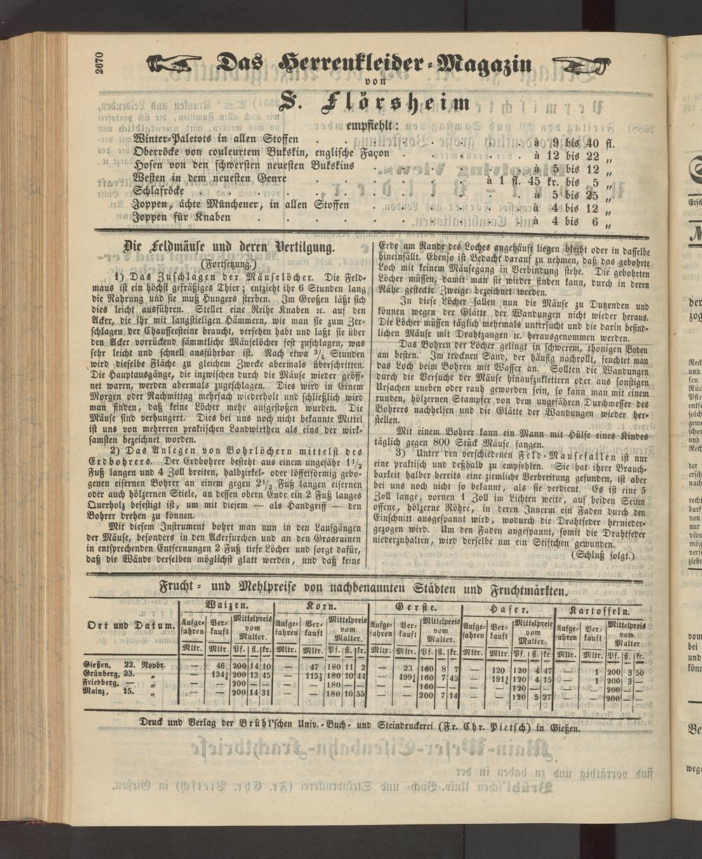 Anzeigeblatt für die Provinzialhauptstadt Gießen. 1840-1867