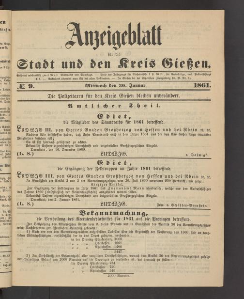 Anzeigeblatt für die Provinzialhauptstadt Gießen. 1840-1867