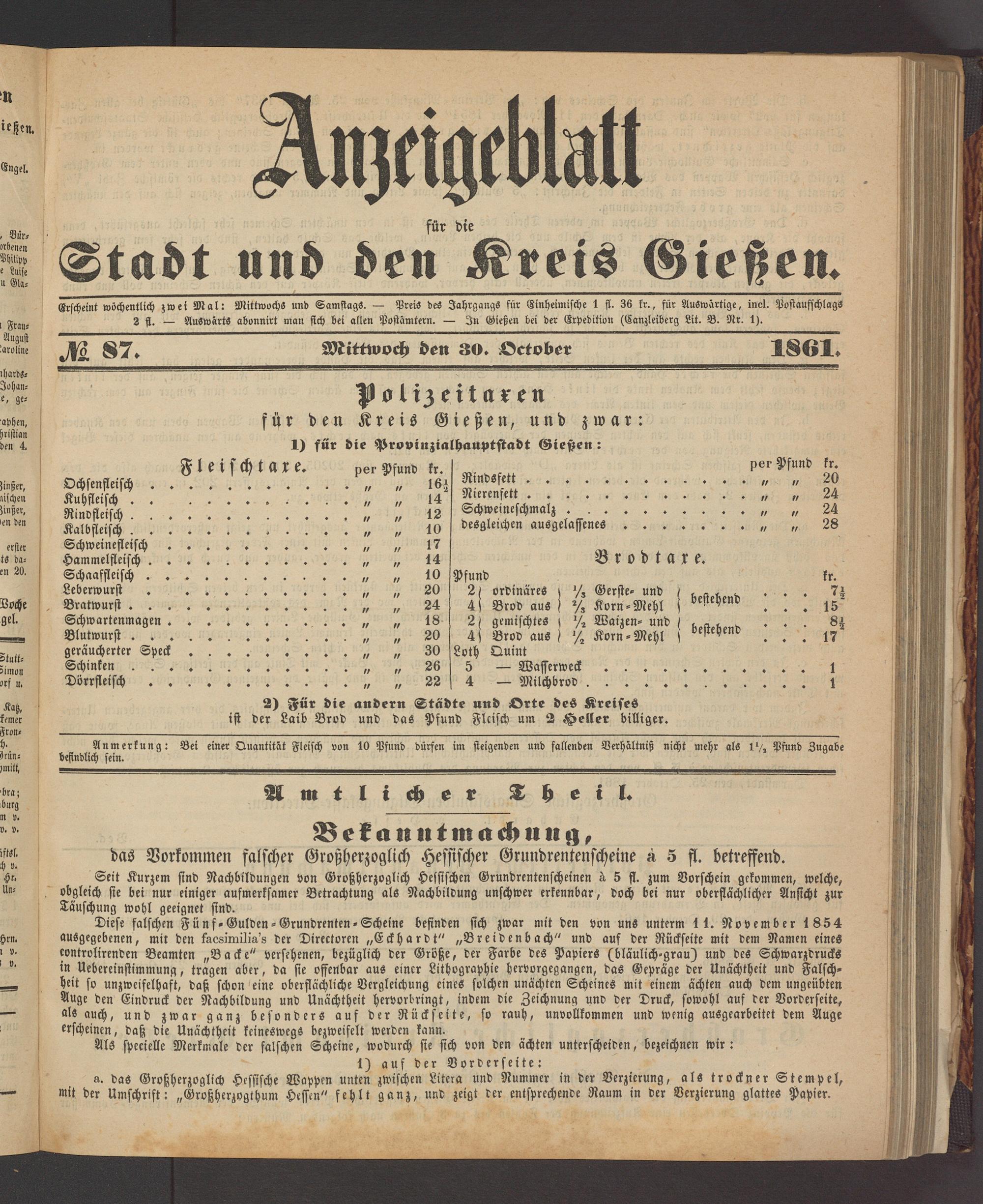 Anzeigeblatt für die Provinzialhauptstadt Gießen. 1840-1867