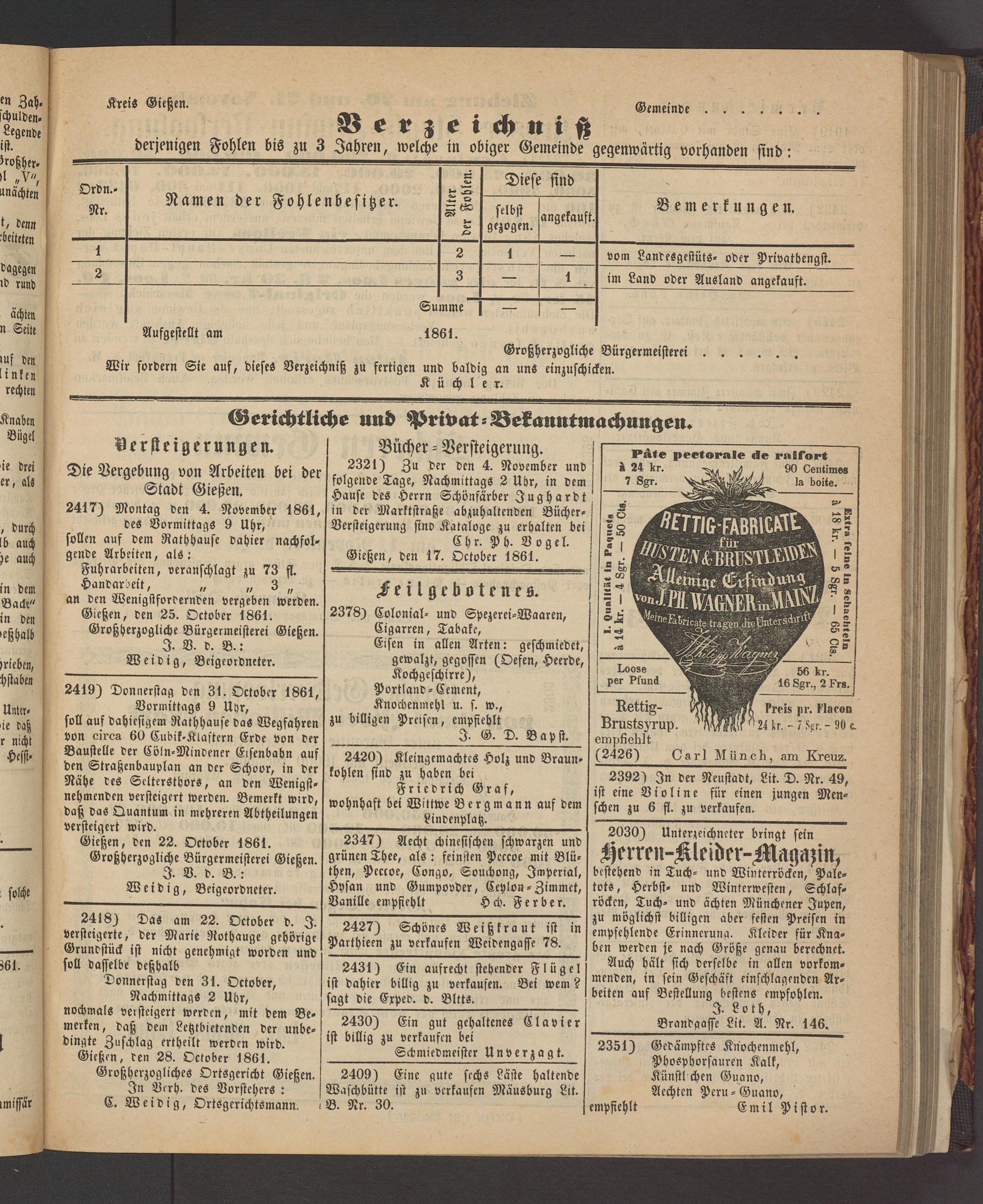 Anzeigeblatt für die Provinzialhauptstadt Gießen. 1840-1867