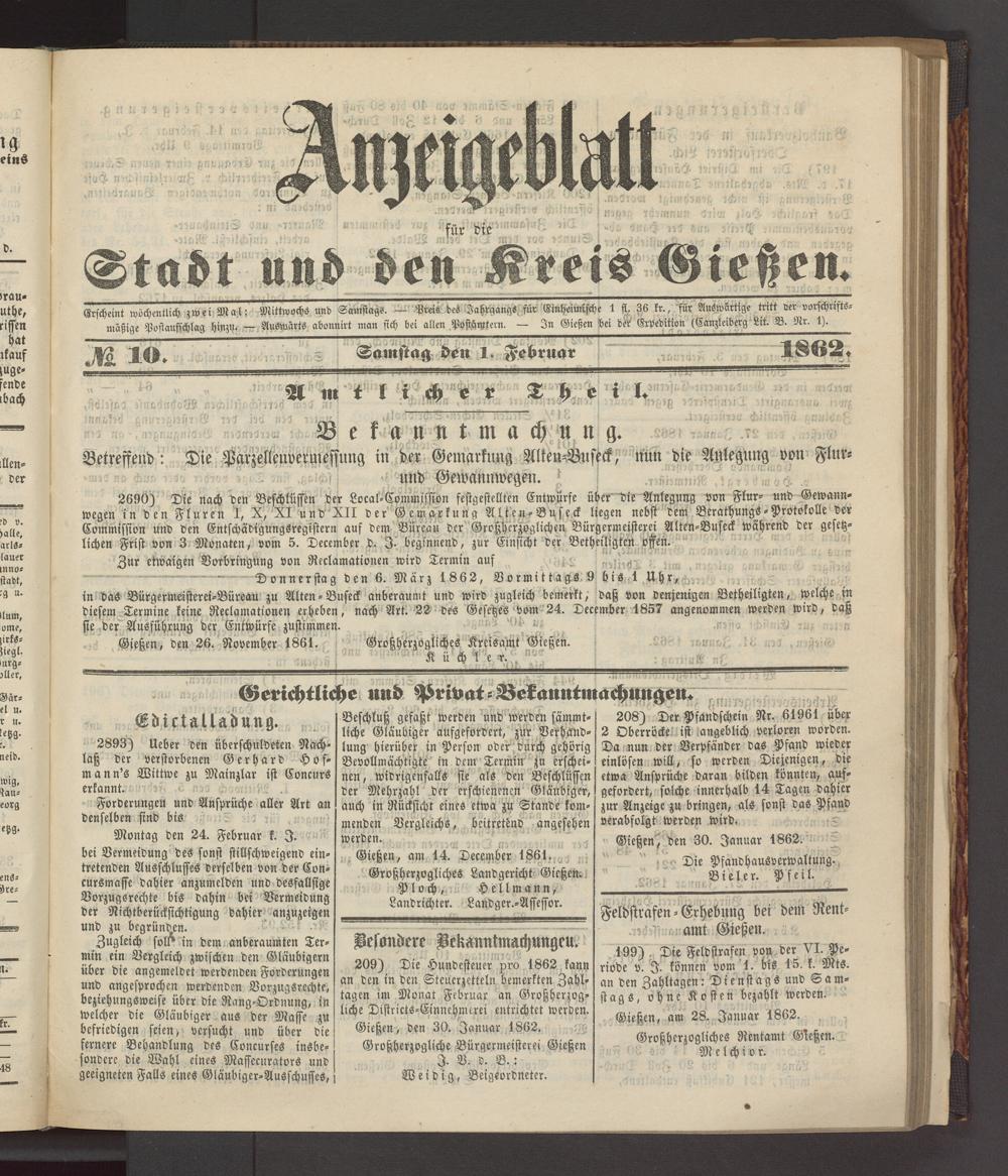 Anzeigeblatt für die Provinzialhauptstadt Gießen. 1840-1867