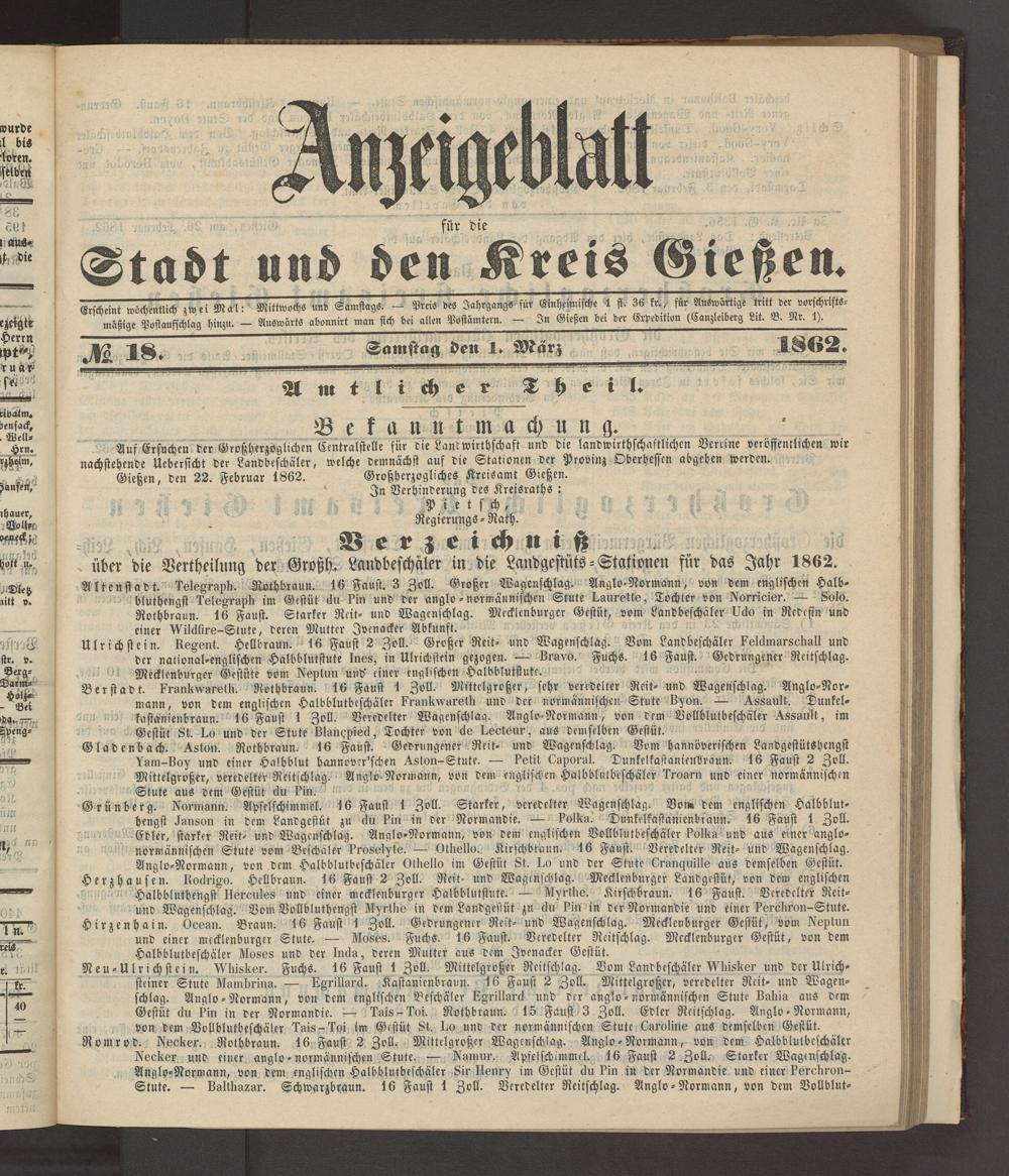 Anzeigeblatt für die Provinzialhauptstadt Gießen. 1840-1867