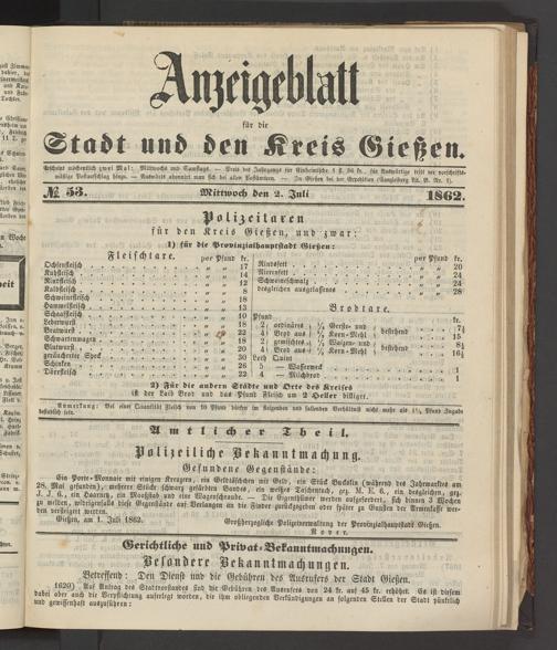 Anzeigeblatt für die Provinzialhauptstadt Gießen. 1840-1867