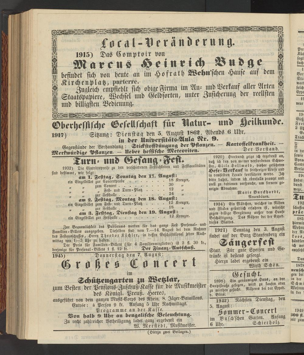 Anzeigeblatt für die Provinzialhauptstadt Gießen. 1840-1867