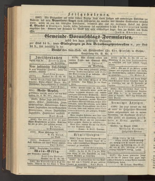 Anzeigeblatt für die Provinzialhauptstadt Gießen. 1840-1867