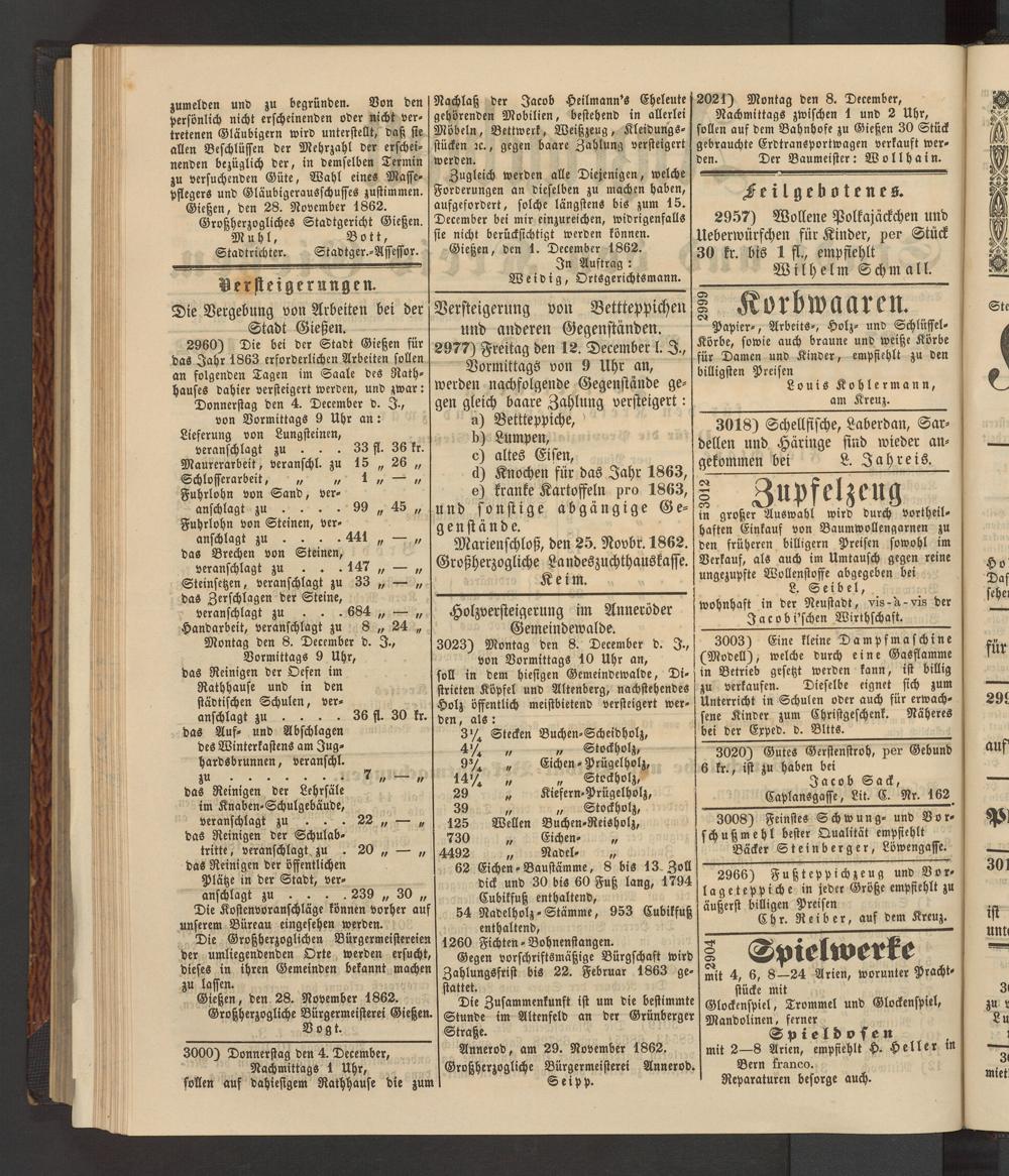 Anzeigeblatt für die Provinzialhauptstadt Gießen. 1840-1867