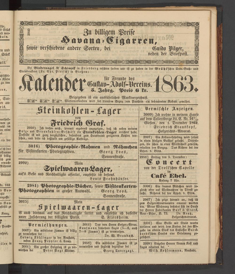 Anzeigeblatt für die Provinzialhauptstadt Gießen. 1840-1867