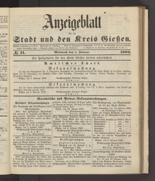 Anzeigeblatt für die Provinzialhauptstadt Gießen. 1840-1867