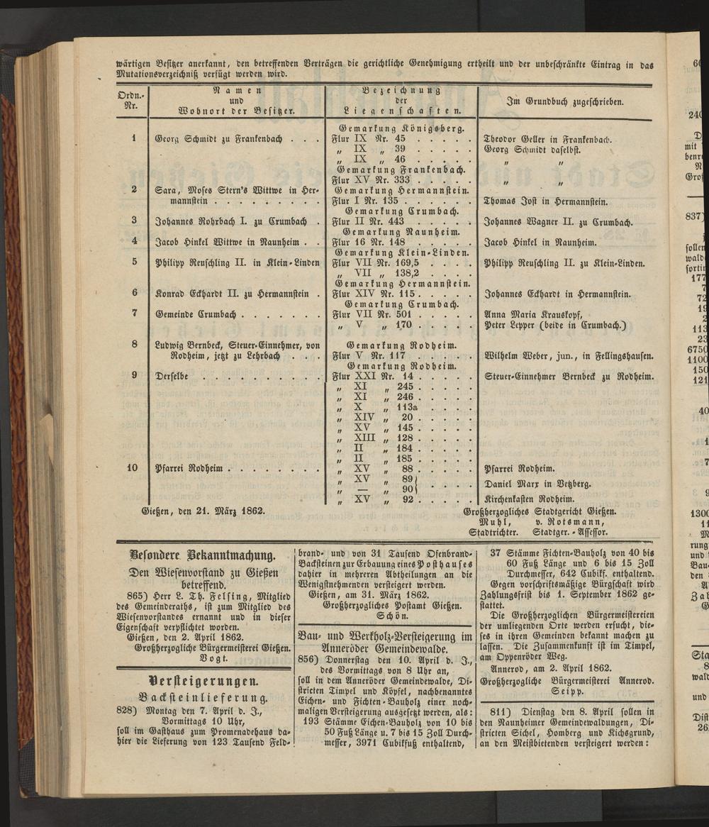 Anzeigeblatt für die Provinzialhauptstadt Gießen. 1840-1867