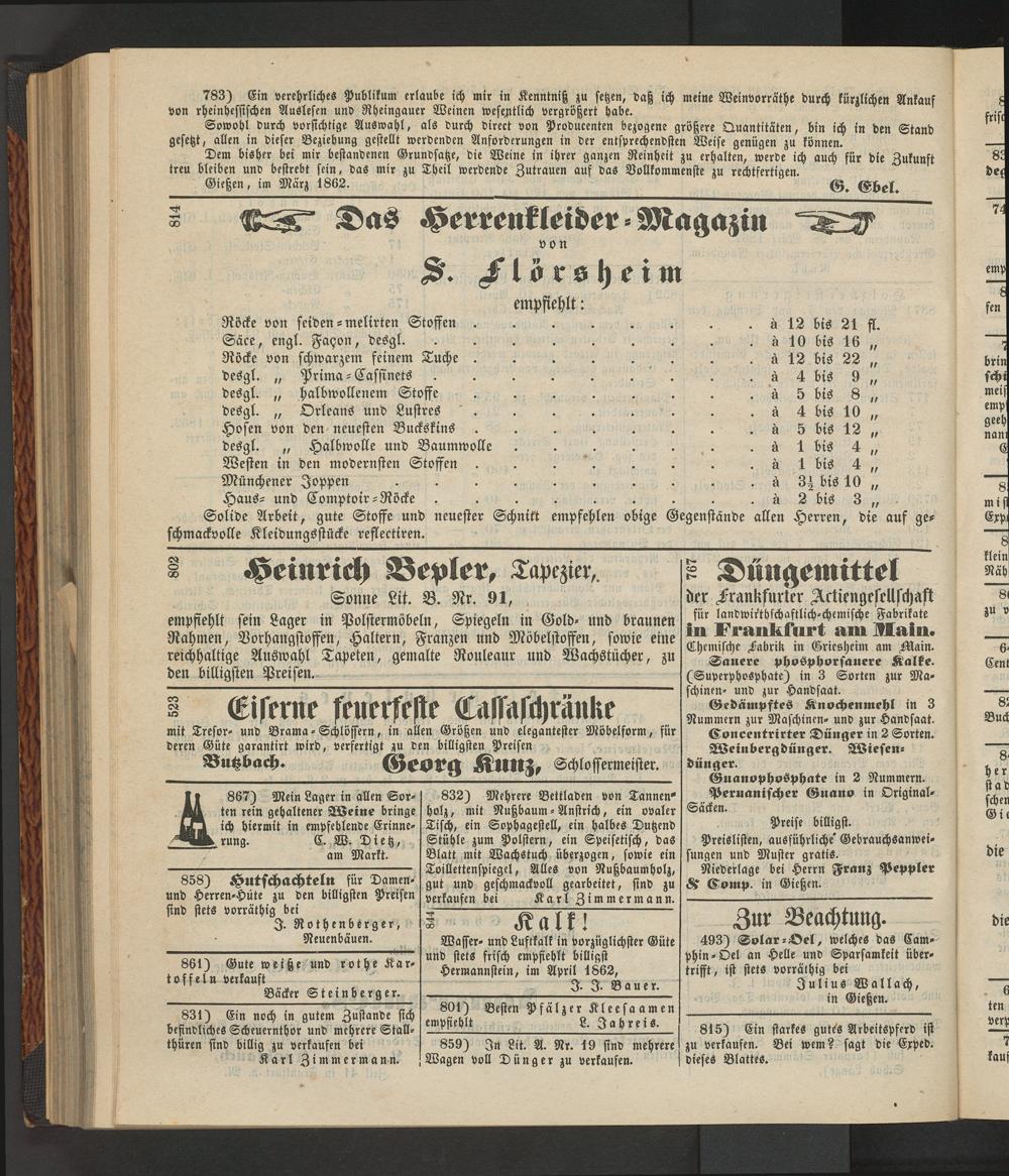 Anzeigeblatt für die Provinzialhauptstadt Gießen. 1840-1867
