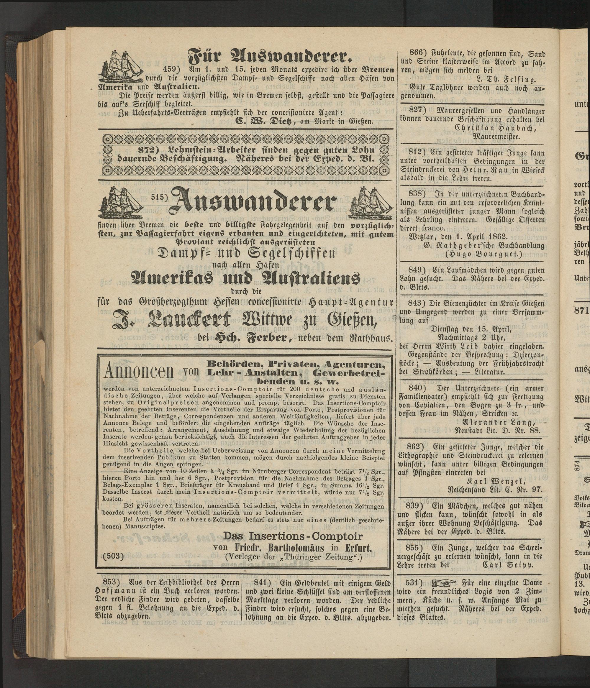 Anzeigeblatt für die Provinzialhauptstadt Gießen. 1840-1867
