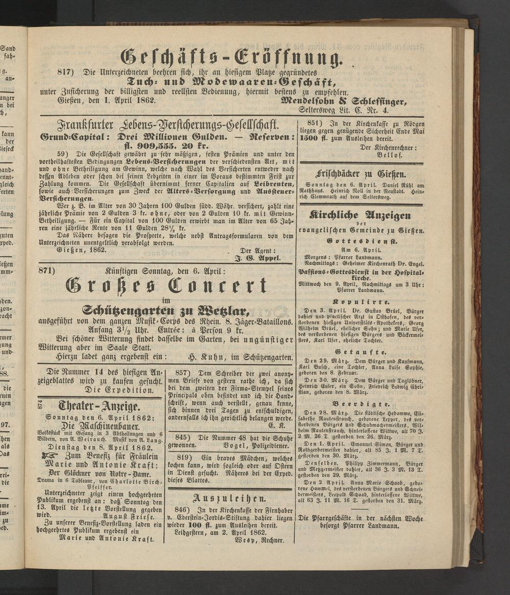 Anzeigeblatt für die Provinzialhauptstadt Gießen. 1840-1867