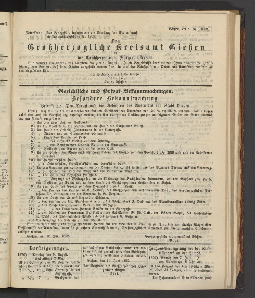 Anzeigeblatt für die Provinzialhauptstadt Gießen. 1840-1867