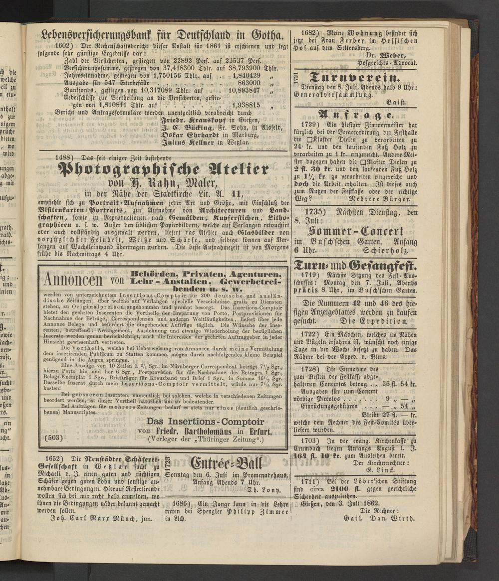 Anzeigeblatt für die Provinzialhauptstadt Gießen. 1840-1867