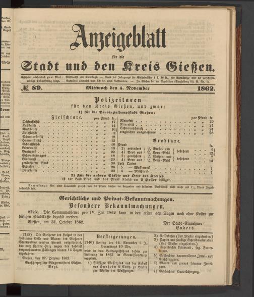 Anzeigeblatt für die Provinzialhauptstadt Gießen. 1840-1867