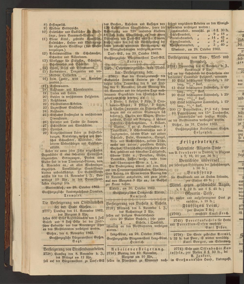 Anzeigeblatt für die Provinzialhauptstadt Gießen. 1840-1867