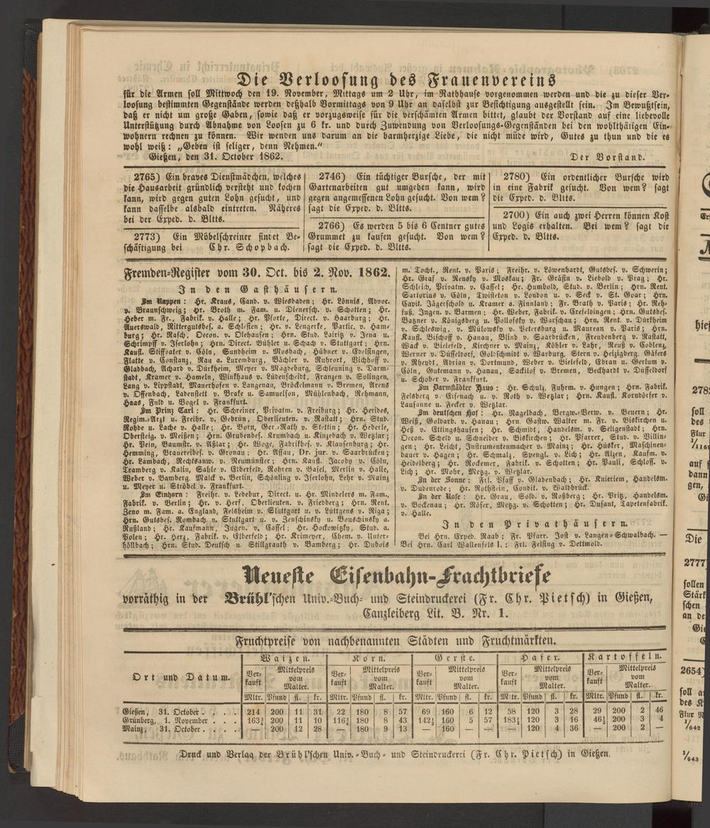 Anzeigeblatt für die Provinzialhauptstadt Gießen. 1840-1867