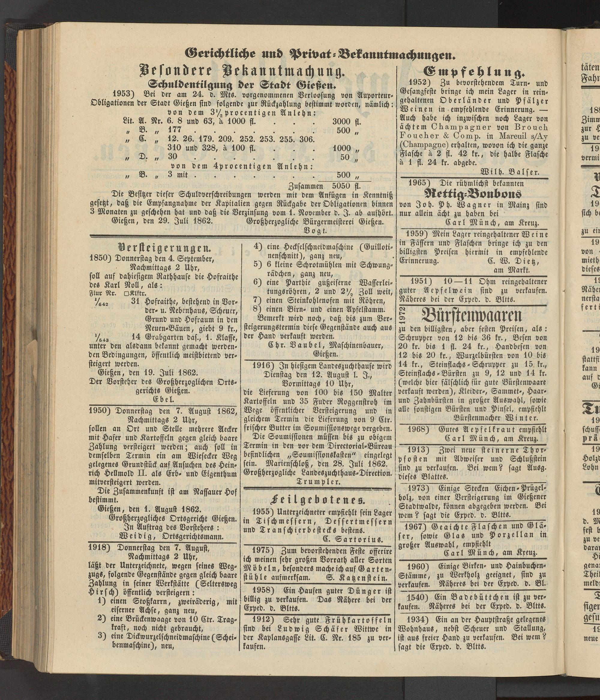 Anzeigeblatt für die Provinzialhauptstadt Gießen. 1840-1867