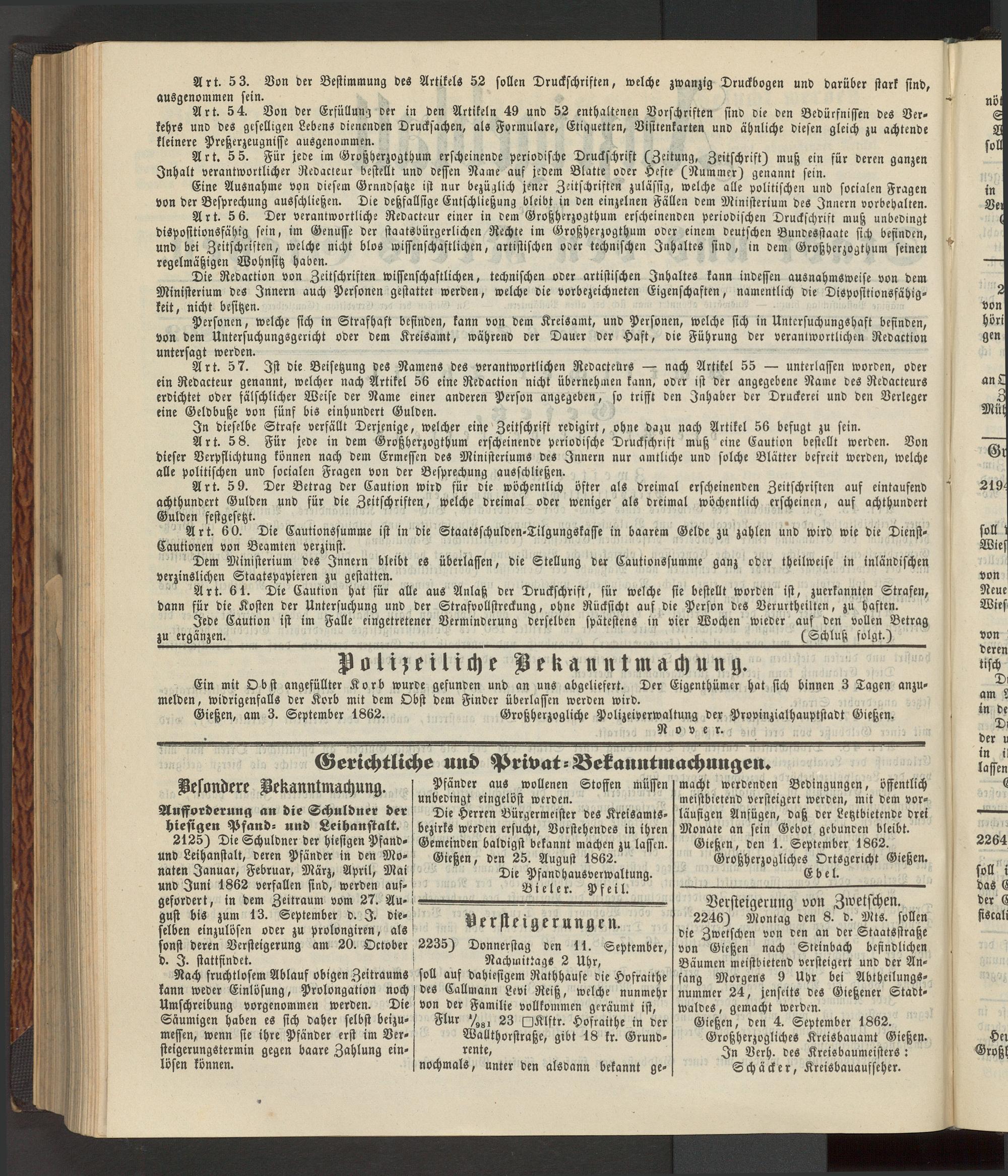 Anzeigeblatt für die Provinzialhauptstadt Gießen. 1840-1867