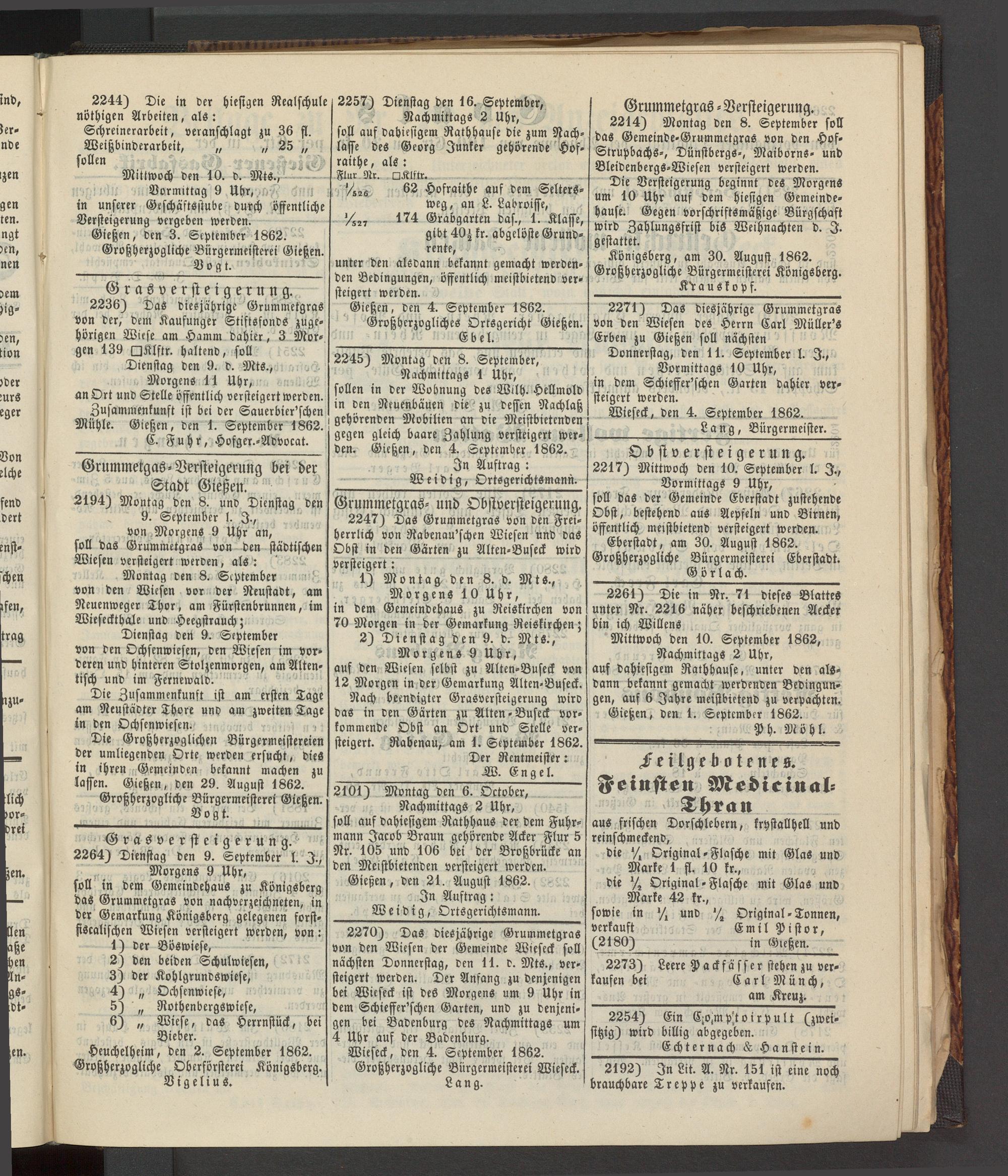 Anzeigeblatt für die Provinzialhauptstadt Gießen. 1840-1867