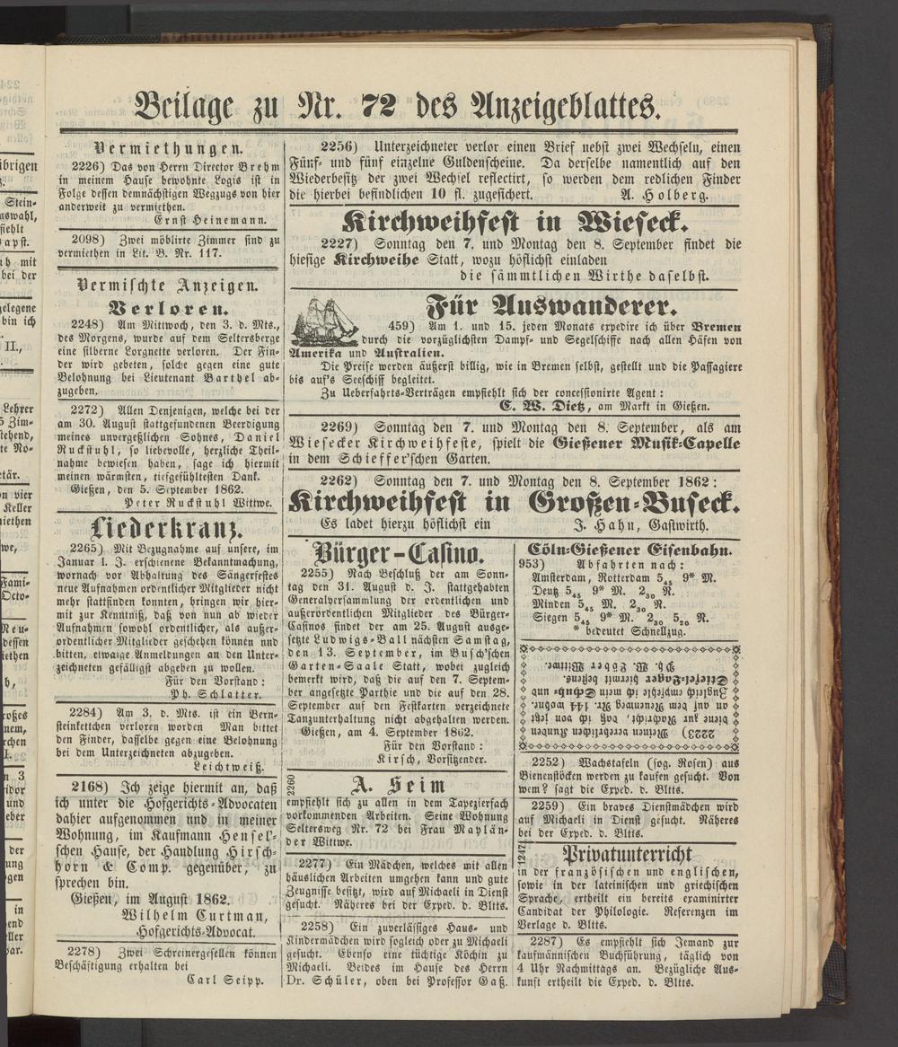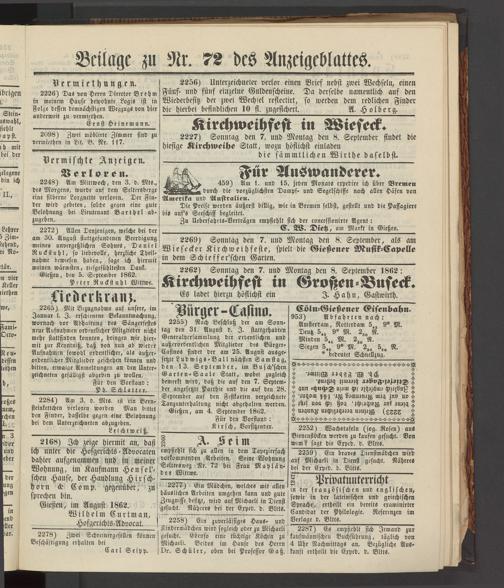 Anzeigeblatt für die Provinzialhauptstadt Gießen. 1840-1867