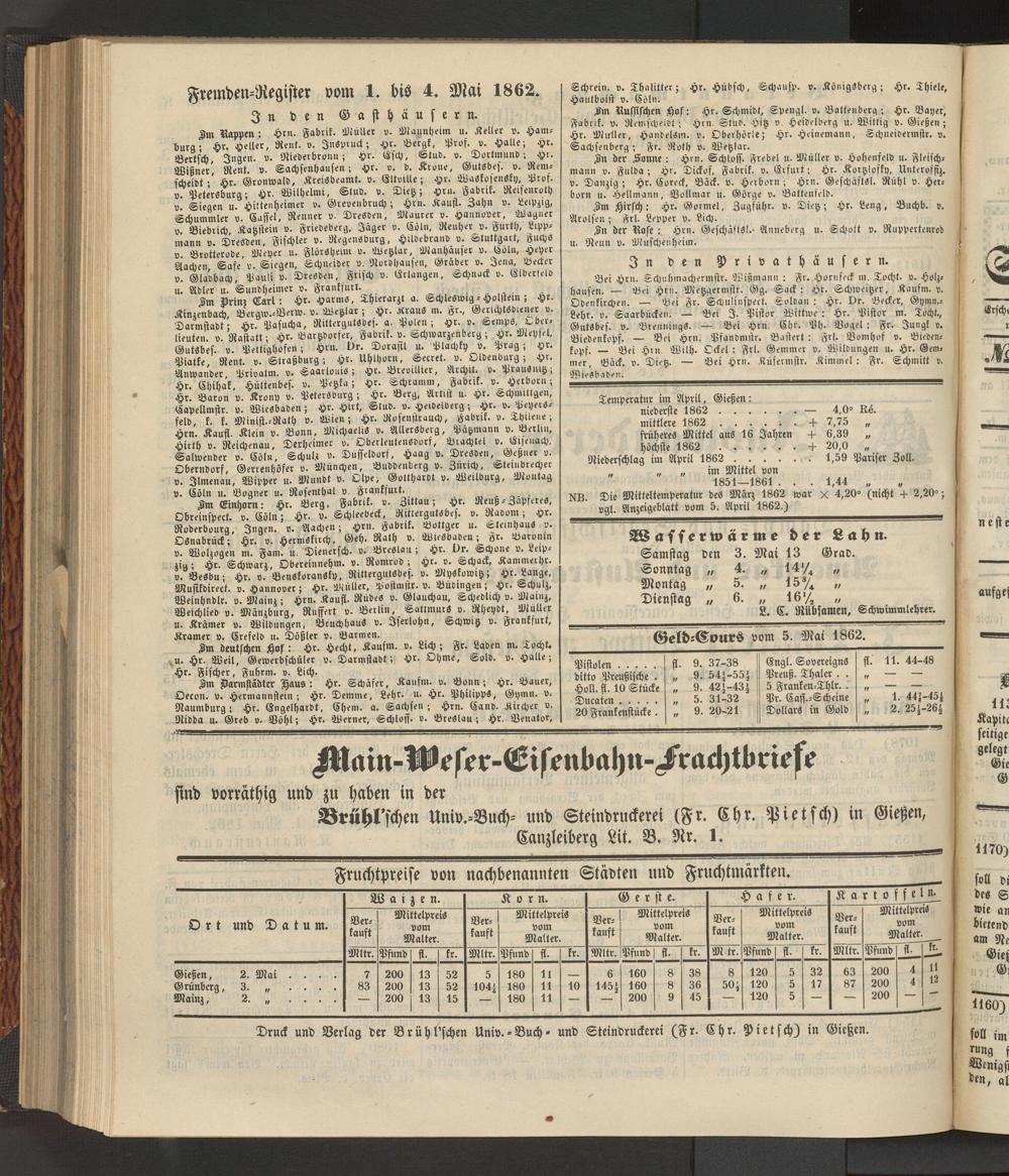 Anzeigeblatt für die Provinzialhauptstadt Gießen. 1840-1867