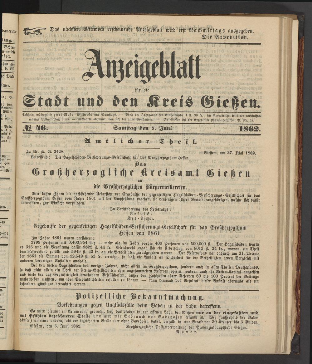 Anzeigeblatt für die Provinzialhauptstadt Gießen. 1840-1867