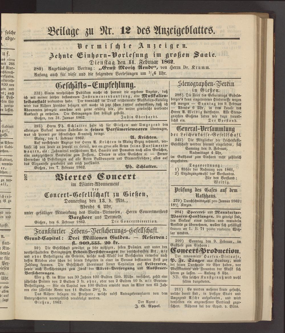 Anzeigeblatt für die Provinzialhauptstadt Gießen. 1840-1867