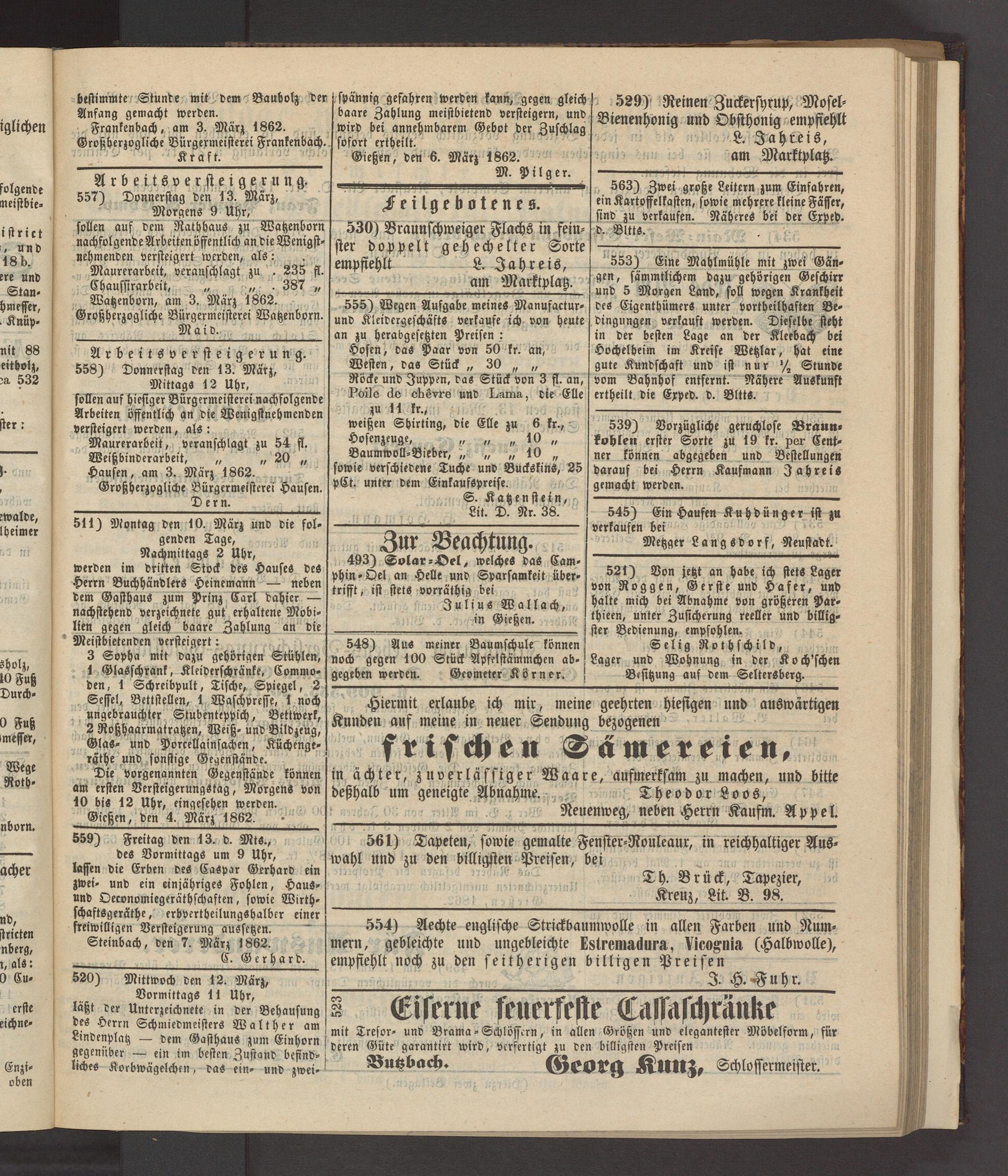 Anzeigeblatt für die Provinzialhauptstadt Gießen. 1840-1867