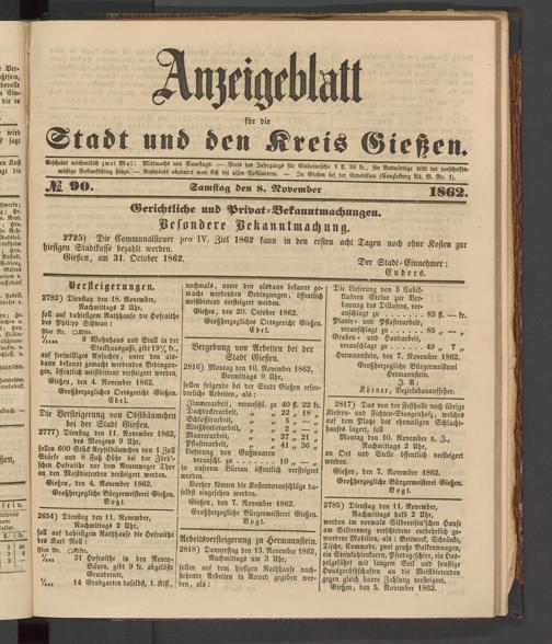 Anzeigeblatt für die Provinzialhauptstadt Gießen. 1840-1867