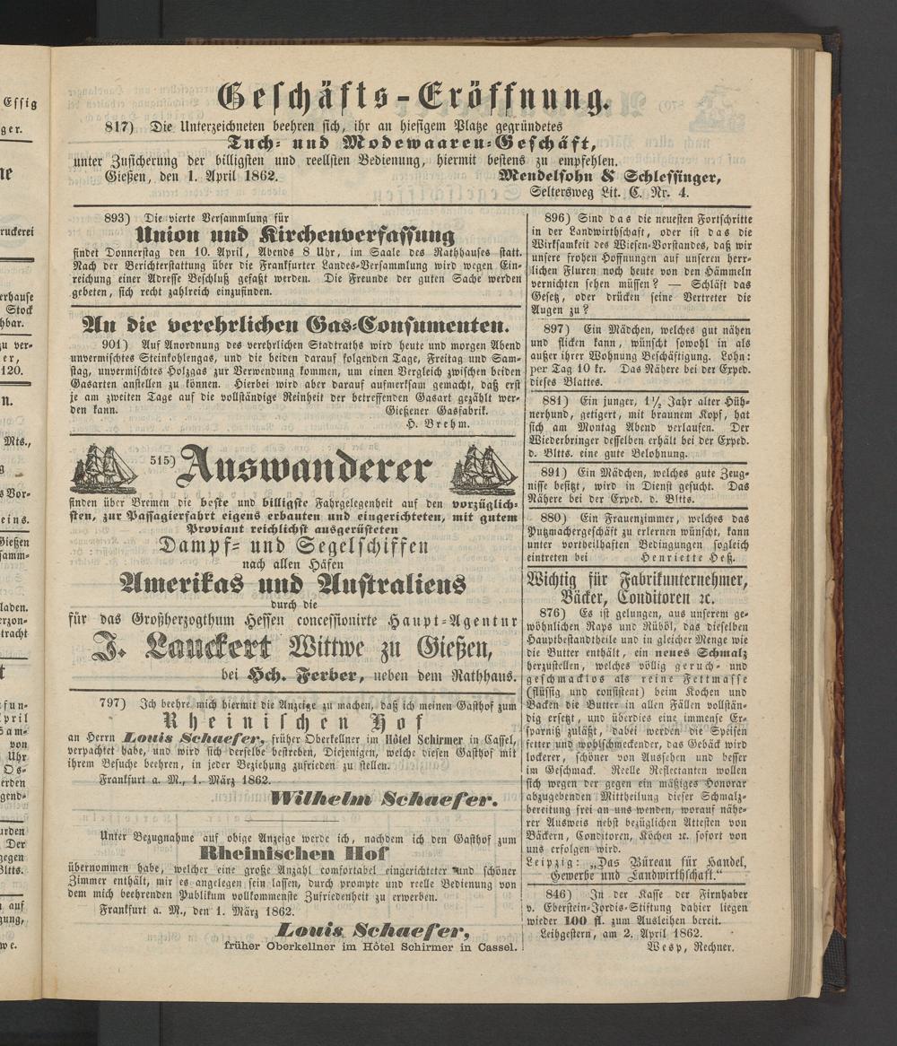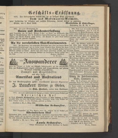 Anzeigeblatt für die Provinzialhauptstadt Gießen. 1840-1867