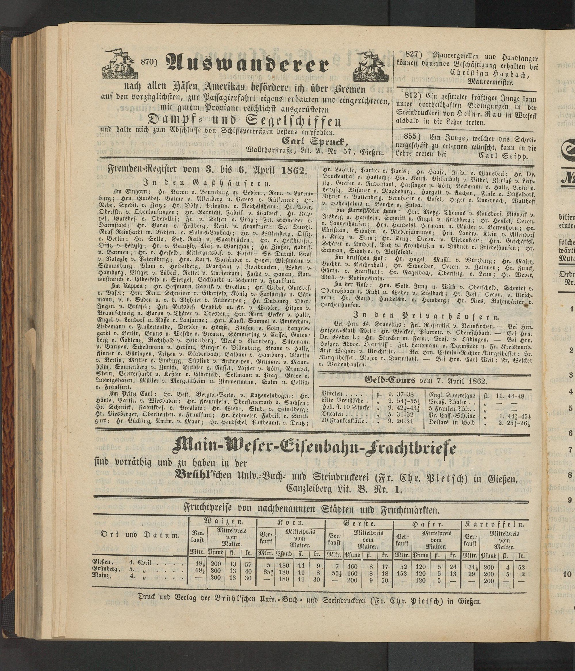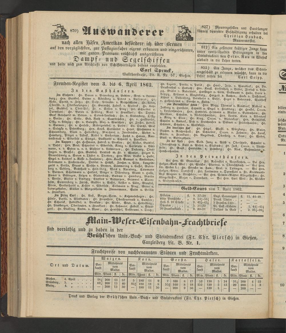 Anzeigeblatt für die Provinzialhauptstadt Gießen. 1840-1867