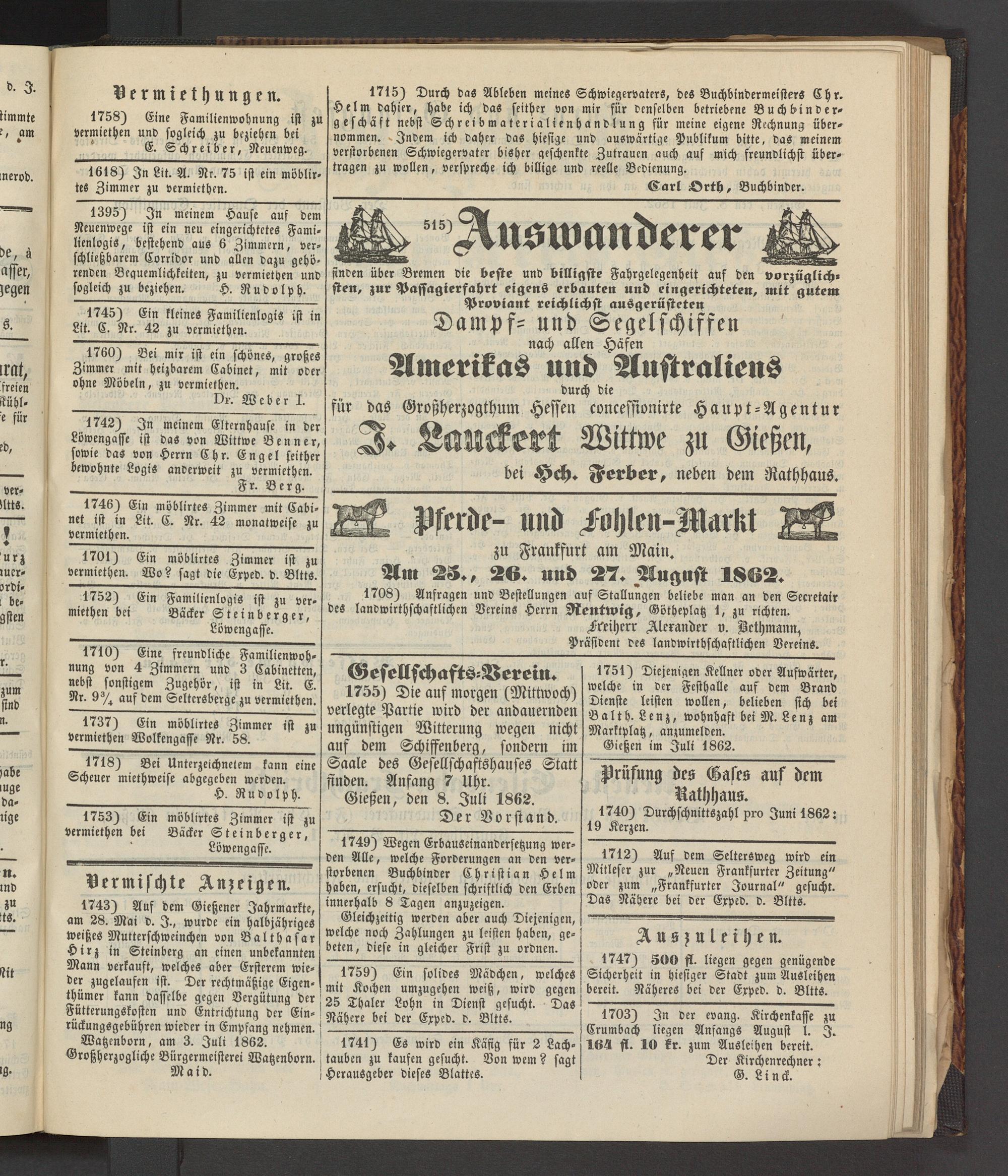 Anzeigeblatt für die Provinzialhauptstadt Gießen. 1840-1867