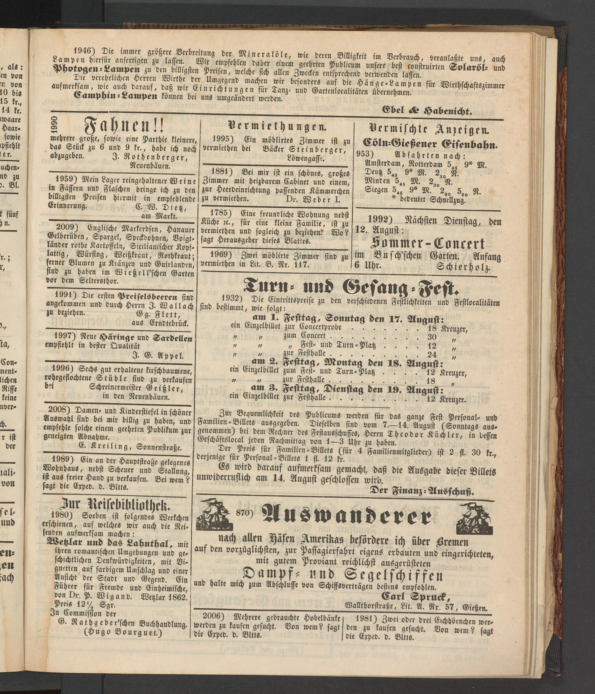 Anzeigeblatt für die Provinzialhauptstadt Gießen. 1840-1867