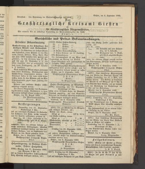 Anzeigeblatt für die Provinzialhauptstadt Gießen. 1840-1867