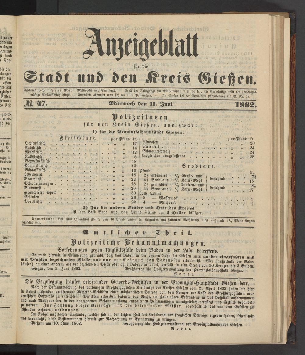 Anzeigeblatt für die Provinzialhauptstadt Gießen. 1840-1867