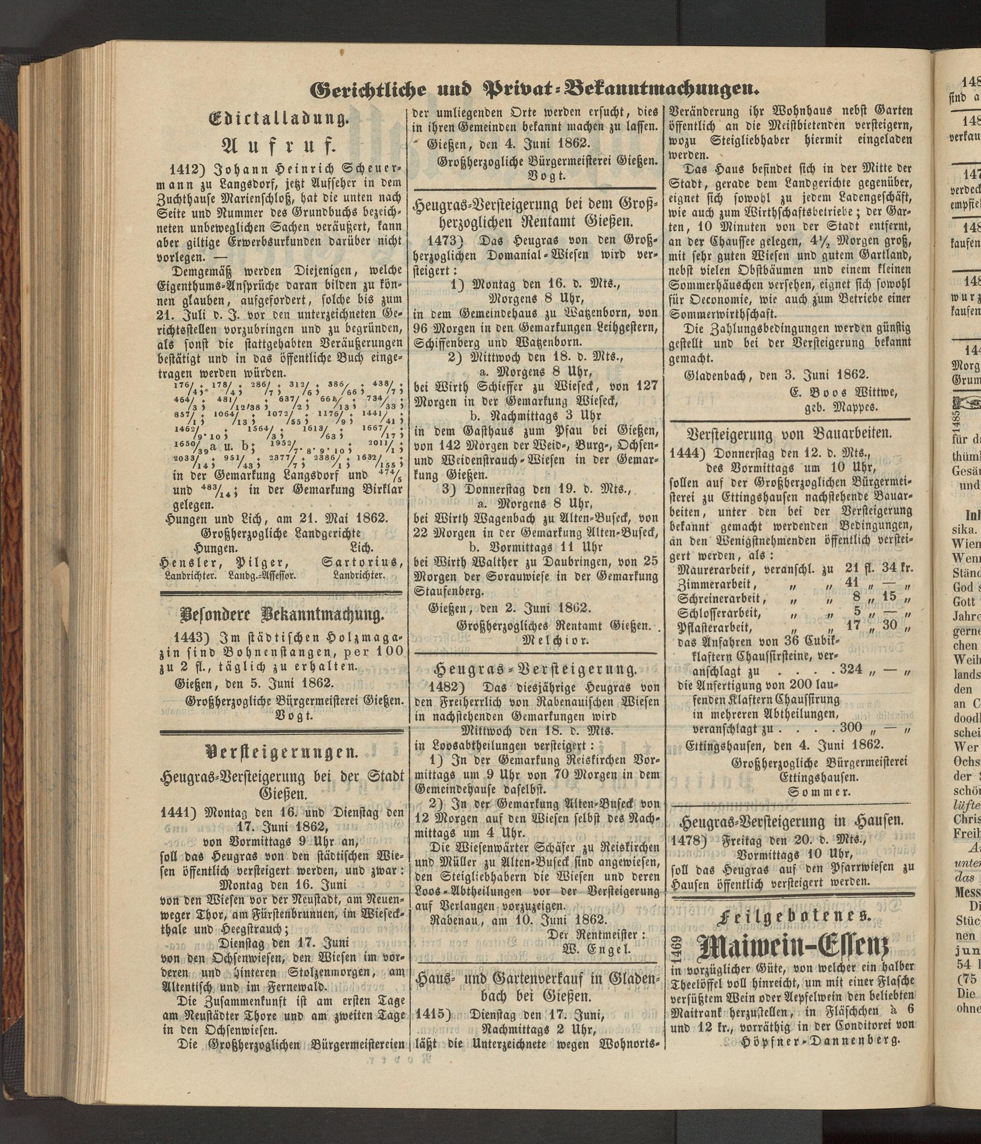 Anzeigeblatt für die Provinzialhauptstadt Gießen. 1840-1867