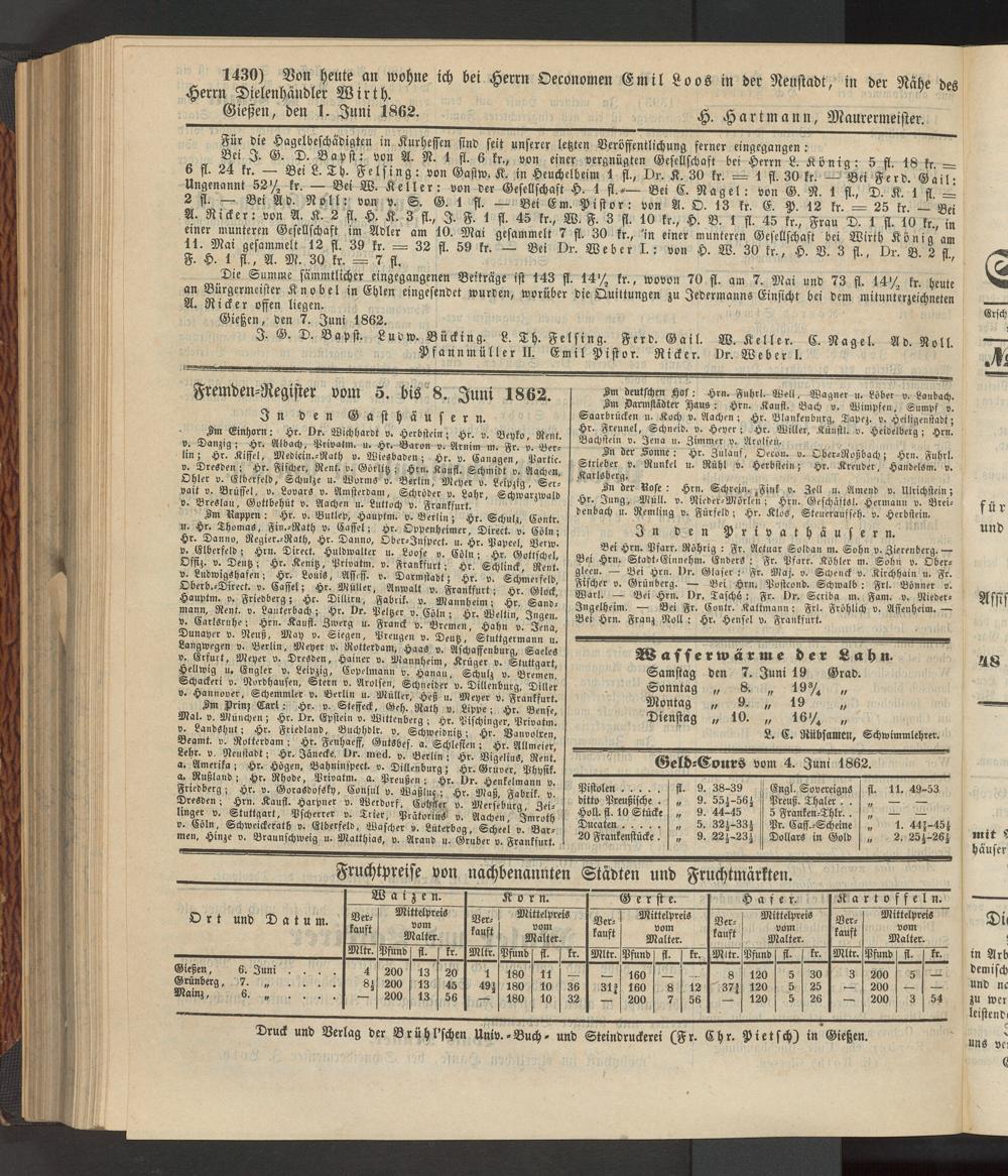 Anzeigeblatt für die Provinzialhauptstadt Gießen. 1840-1867