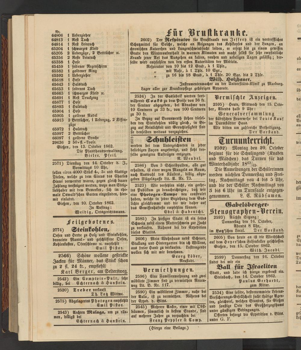 Anzeigeblatt für die Provinzialhauptstadt Gießen. 1840-1867
