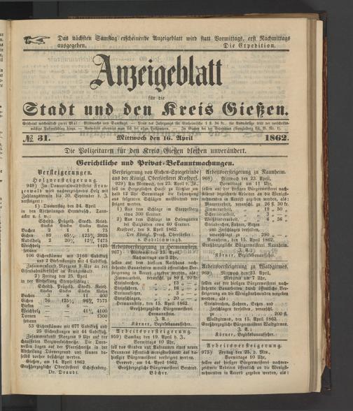 Anzeigeblatt für die Provinzialhauptstadt Gießen. 1840-1867