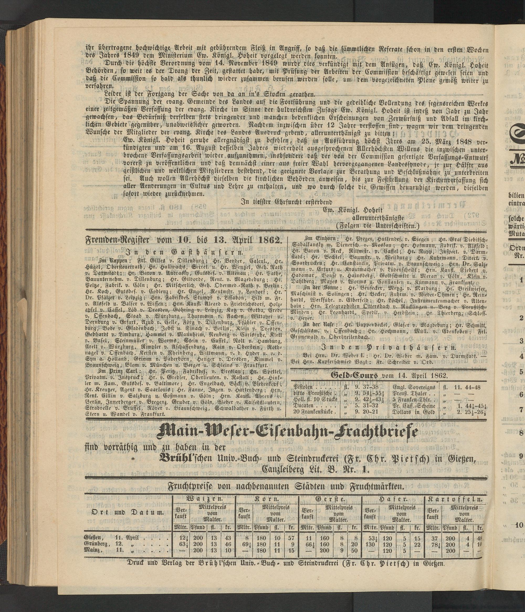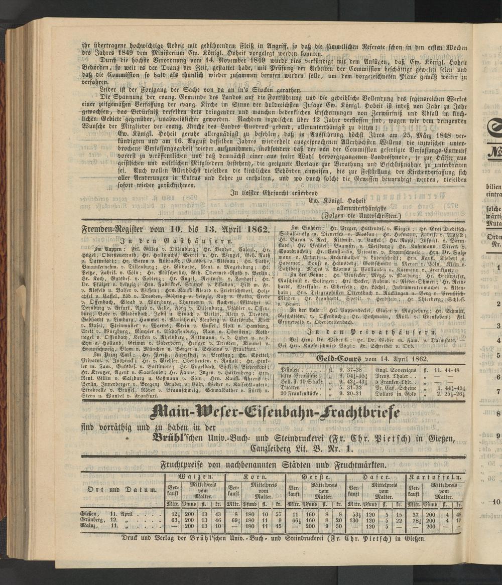 Anzeigeblatt für die Provinzialhauptstadt Gießen. 1840-1867